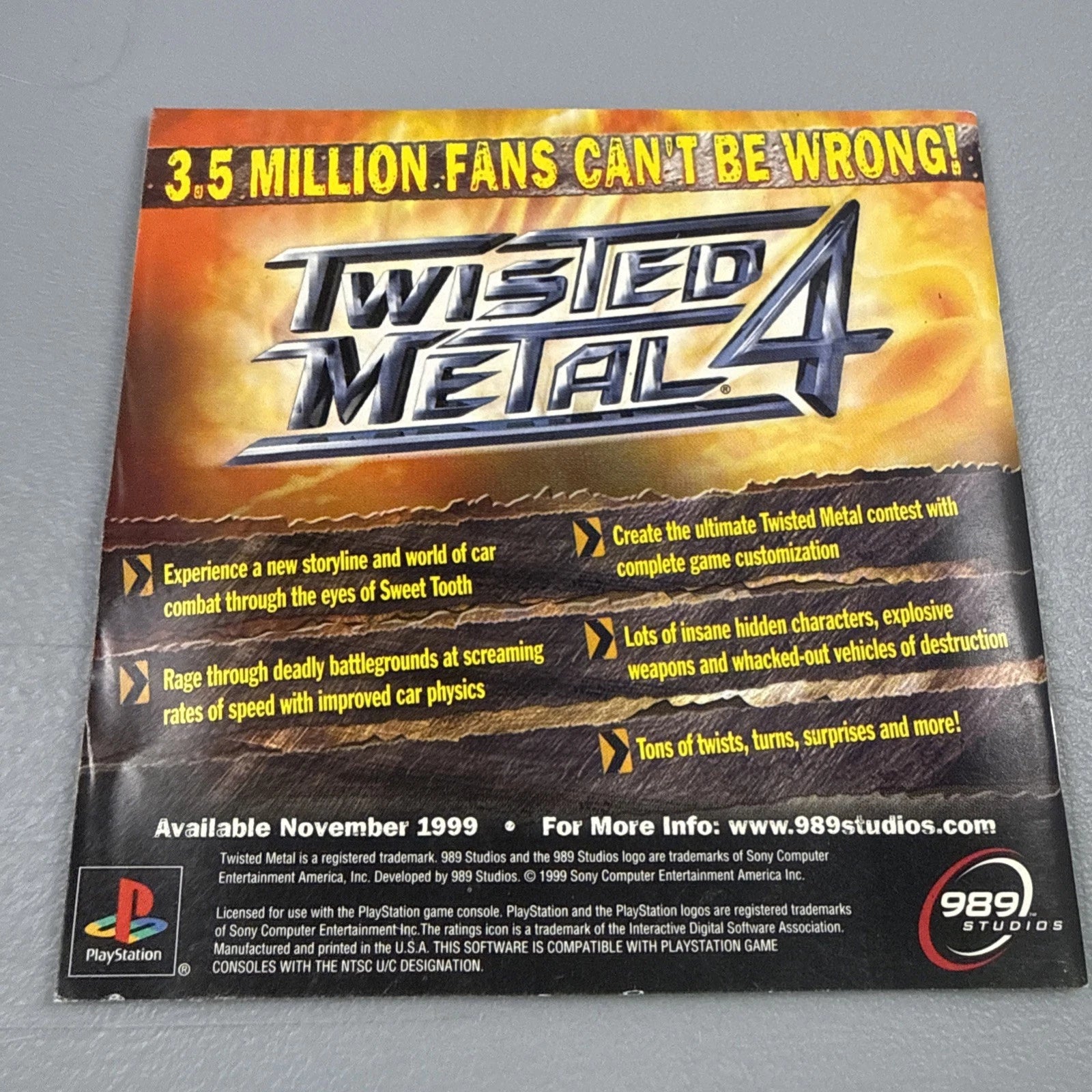 Twisted Metal III - Manual Only W/ REG CARD